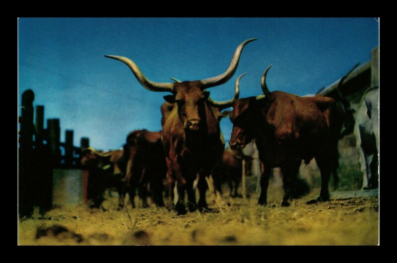 DR JIM STAMPS US TEXAS LONGHORN STEER TOPICAL CHROME POSTCARD ANIMALS
