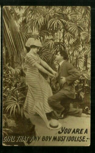 Title (ebay affiliate link): Lovers/ romantic postcard/ holding hands/"girl any boy must idolise"/