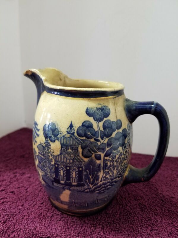 Antique Buffalo Pottery Cream Pitcher 1906 Blue Willow