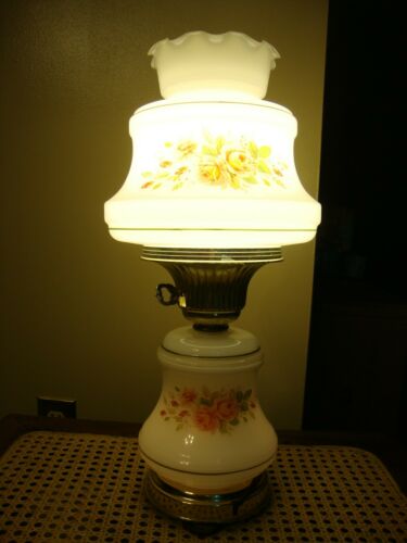 Antique Vtg 1970s Opaline Glass Hurricane Lamp WORKS