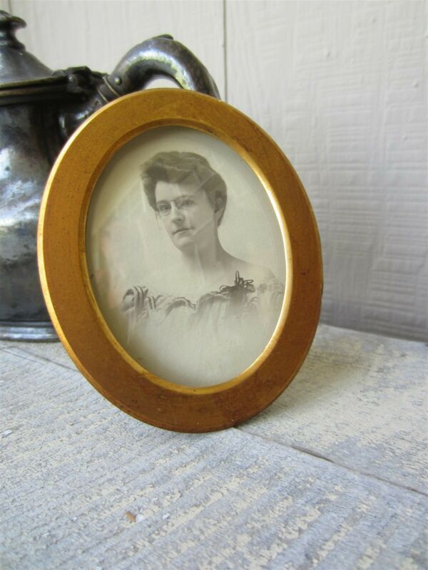 Vintage STRAWBRIDGE & CLOTHIER Philadelphia PA Convex Glass Easel Oval 4" FRAME