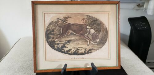 RARE 18th or 19th c. FRENCH HUNTING DOG PRINT 14" X 11" FRAMED