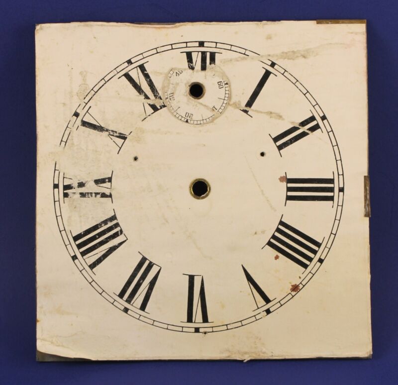 Title (ebay affiliate link): CLOCK DIAL - ANTIQUE 8" SQUARE PAPER over METAL DIAL - MP37