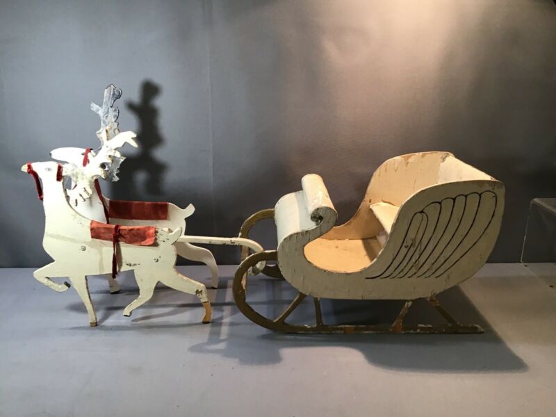 Title (ebay affiliate link): ANTIQUE Folk Art CHRISTMAS ORNAMENT SLEIGH Reindeer Painted LARGE Wood