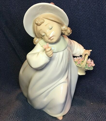 Lladro MIMOSA ROMANTICA (Romance) #6683 Jose Puche Girl w/Flower Basket Figurine