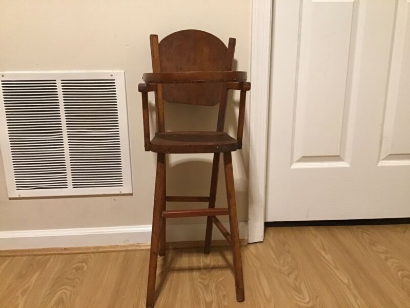 Title (ebay affiliate link): Antique Vintage 1930s Child Baby Solid Wood High Chair w/ Tray