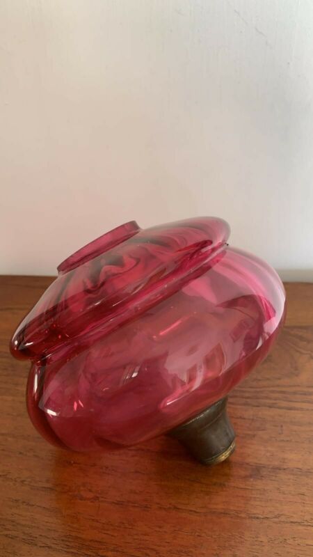 Cranberry Ribbed Glass Oil Lamp Font AF