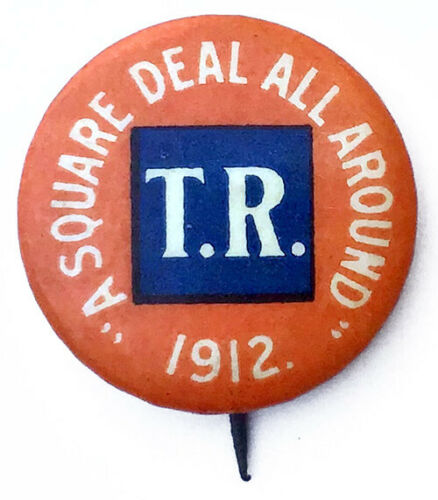 Title (ebay affiliate link): 1912 Theodore Roosevelt SQUARE DEAL ALL AROUND Celluloid Campaign Pinback