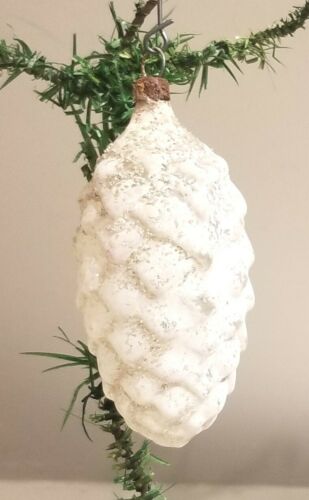 Title (ebay affiliate link): Early 1900s White Pine Cone. Ground Glass Chips. Air-Brushed German Ornament.