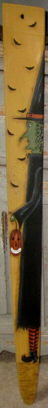 *~*PRIMITIVE*~* HP FOLK ART PRIM WITCH *~* HALLOWEEN *~* 36" MINK STRETCHER