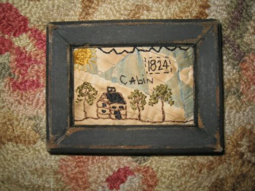 Primitive tiny Sampler~1824 Sun Shines On The Old Cabin~Early Quilt~ Folk Art ~