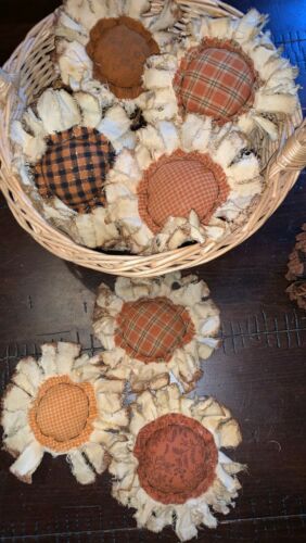 Title (ebay affiliate link): 7 Primitive Fall Sunflowers Bowl Fillers Sunflower Ornies Handmade Homespun