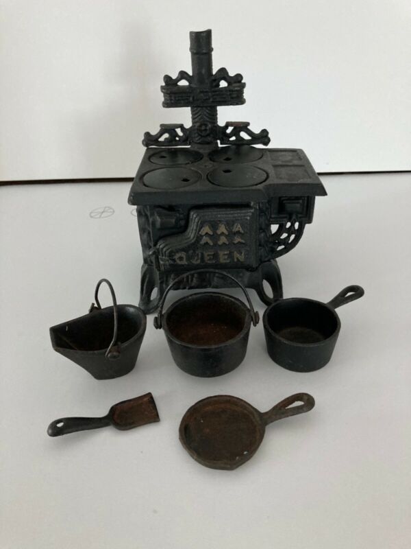 Title (ebay affiliate link): VINTAGE CAST IRON QUEEN Toy Miniature Salesman Sample Stove * VINTAGE