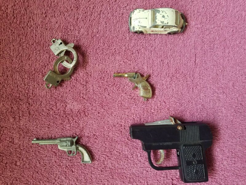 Vintage Die-cast Metal Toy Lot - Cap Gun Key Chain - Hand Cuffs - Volkswagen
