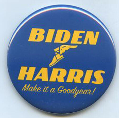 Title (ebay affiliate link): Joe Biden Kamala Harris Make it a Goodyear 2020 campaign button