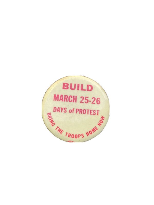 Title (ebay affiliate link): BUILD March 25-26 Bring the Troops Home Now Anti-War 1966 Cause Pinback Button