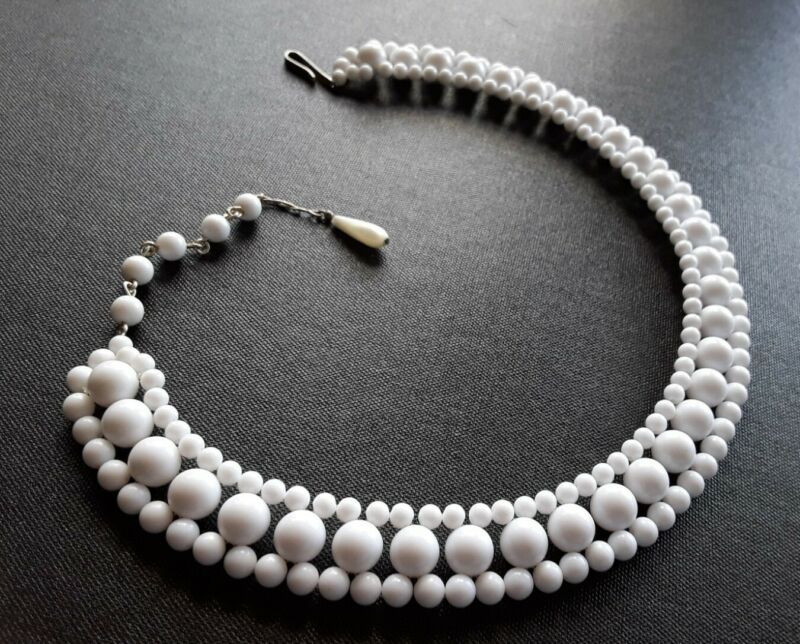 Title (ebay affiliate link): Vintage Necklace Stunning Milk Glass Collar Tripple Row Hook Fastening 1950''s