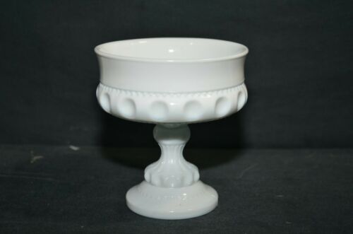 Vintage White Milk Glass - Coin Dot Pedestal Candy Dish
