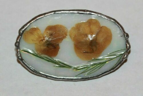 BROOCH PIN Hand Made Vintage Real Dried Flower Silver Tone Milk Glass LOT 25
