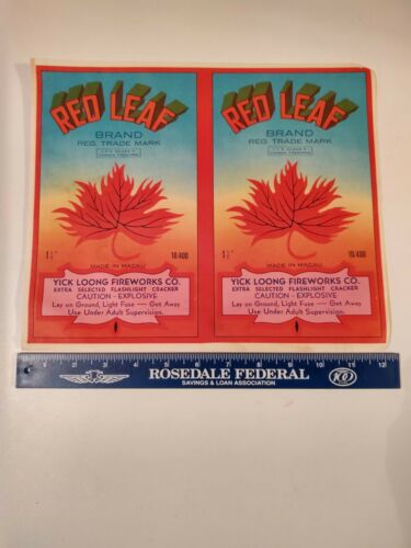 FIREWORK FIRECRACKER LABEL DOUBLE BRICK RED LEAF LABEL
