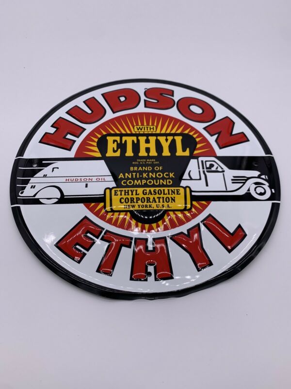 Title (ebay affiliate link): Pre-Owned Hudson Ethyl Gasoline Metal Advertisement New York Gas Sign Round Auto