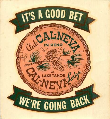RENO NEVADA CLUB CAL-NEVA LAKE TAHOE CAL-NEVA LODGE TRAVEL TOURIST DECAL LABEL