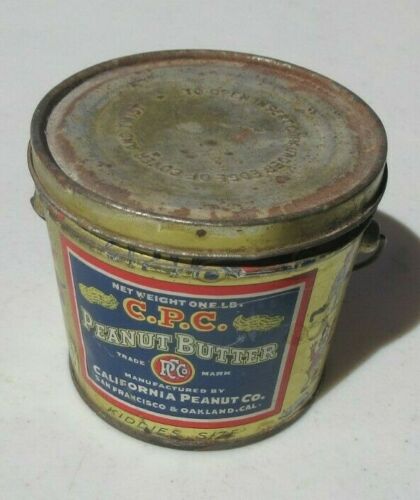 Title (ebay affiliate link): VINTAGE C P C PEANUT BUTTER TIN CONTAINER PAIL WITH HANDLE KIDDIES SIZE ONE LB.