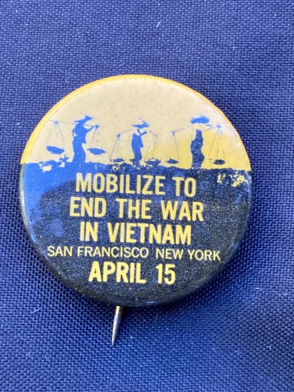 Title (ebay affiliate link): Mobilize to End the War in Vietnam S.F. & NY April 15, 1967 Cause Pinback Button