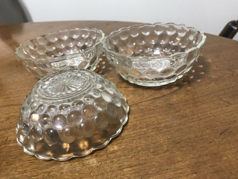 Mixed Size Lot 3 Vintage Anchor Hocking Bubble Dot Fruit Berry Bowls Clear Small