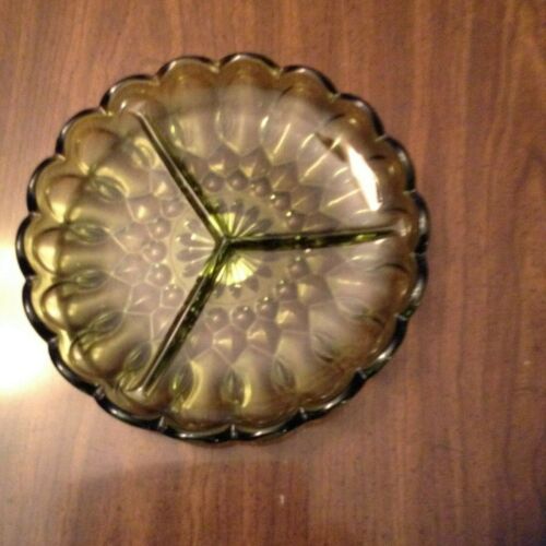 Anchor Hocking 3 Section Green Scalloped Edge Serving Plate Fairfield 8 1/2"