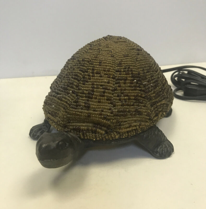 Vintage Cast Iron Glass Beaded Portable Turtle Lamp