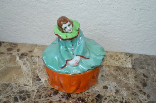 Vintage hand painted Lady Jewelry Ring Trinket Box Figurine Victorian