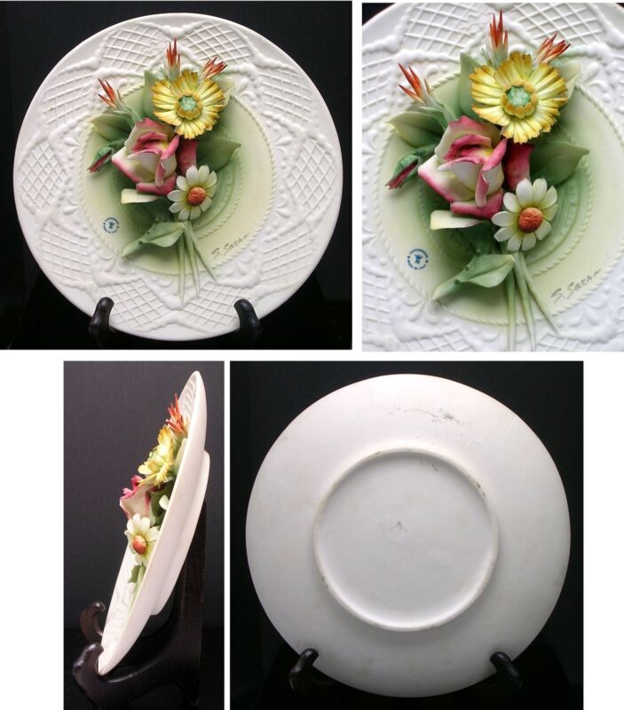 Title (ebay affiliate link): NAPOLEON Mark CAPODIMONTE Wall PLATE ~ ROSE & DAISY FLOWERS ~ ARTIST SIGNED