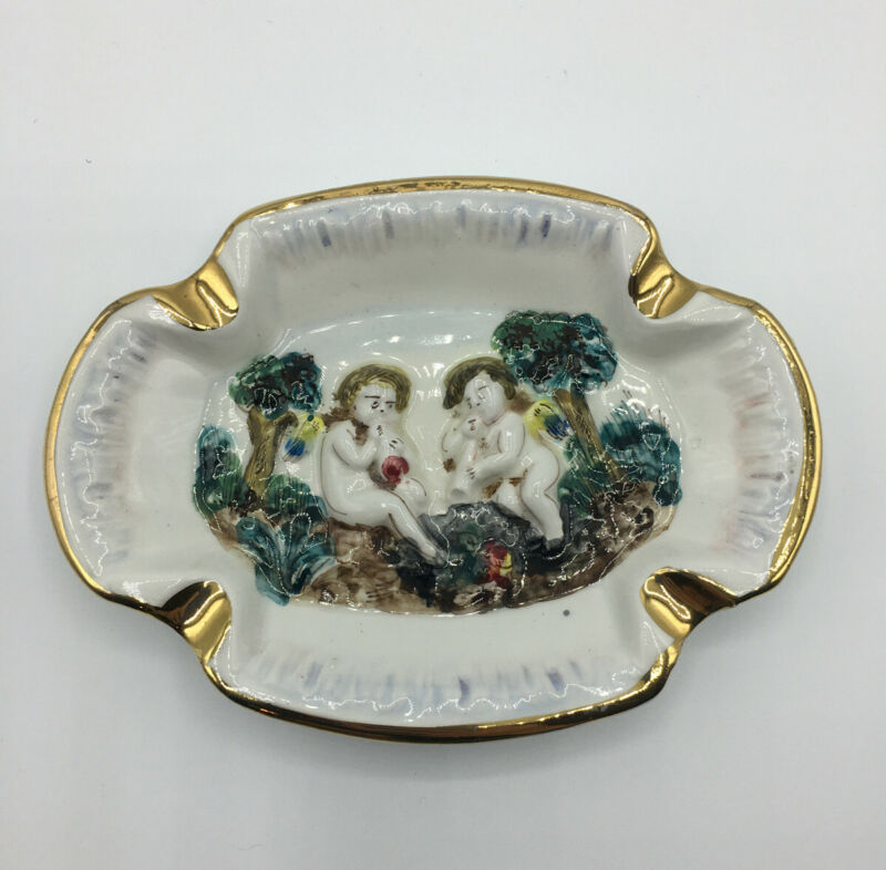 Title (ebay affiliate link): Vintage R. Capodimonte Italy Porcelain Cherub Gold Trim Rectangular Ashtray