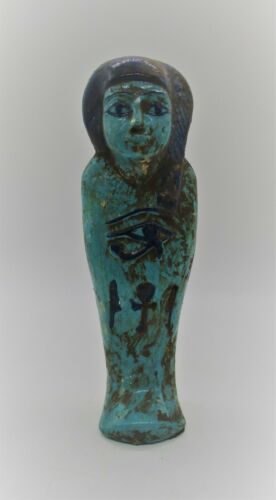 Title (ebay affiliate link): ANCIENT EGYPTIAN BLUE GLAZED FAIENCE USHABTI SHABTI WITH HEIROGLYPHS
