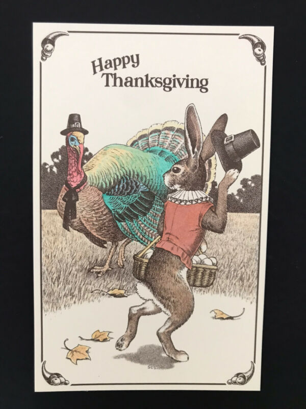 Title (ebay affiliate link): THANKSGIVING GREETING, TURKEY, FLYING RABBIT, 1992 1ST ED. HAND COLORED POSTCARD