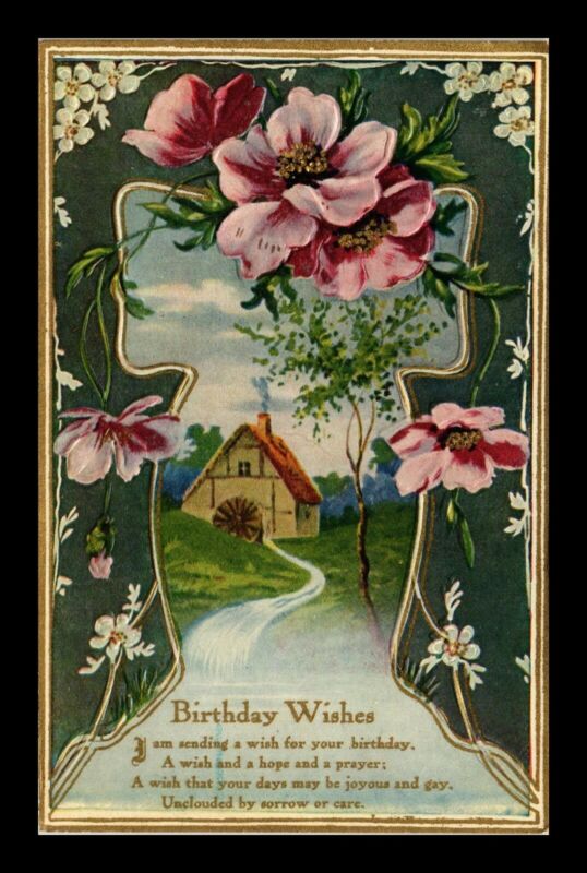 Title (ebay affiliate link): DR JIM STAMPS US BIRTHDAY WISHES WATER MILL VIEW FLORAL GREETING POSTCARD