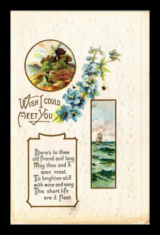 Title (ebay affiliate link): DR JIM STAMPS US WISH I COULD MEET YOU TWO VIEWS FLORAL GREETING POSTCARD