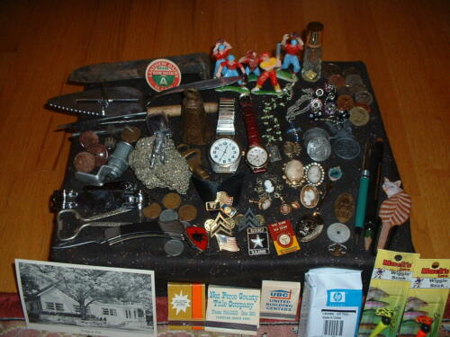 JUNK DRAWER KNIFE,COINS,PAPERWEIGHT,COCA COLA OPENER,CAMEO JEWELRY,MILITARIAA