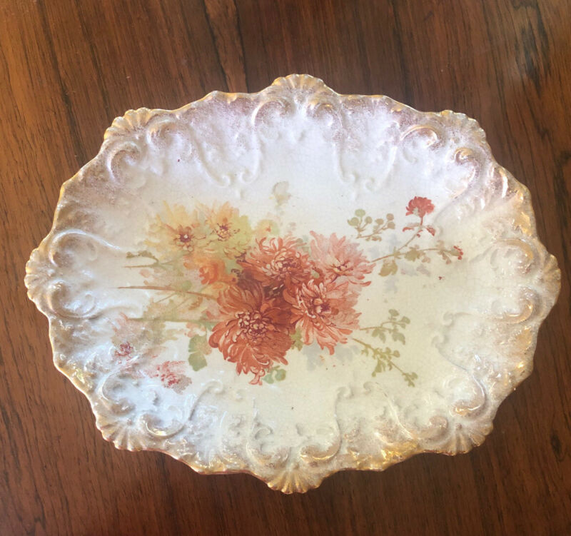 LOVELY ANTIQUE PORCELAIN PLATE HAND PAINTED EMBOSSED GOLD TRIM
