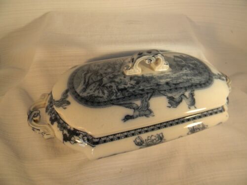 Antique 1871 BROWNFIELD & SONS WOODLAND Flow Blue Serving Dish Porcelain England