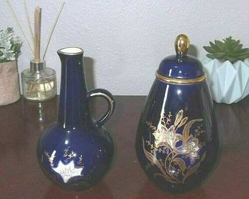 Vintage Rare Staffel Stoneware Germany Blue Gold Vase