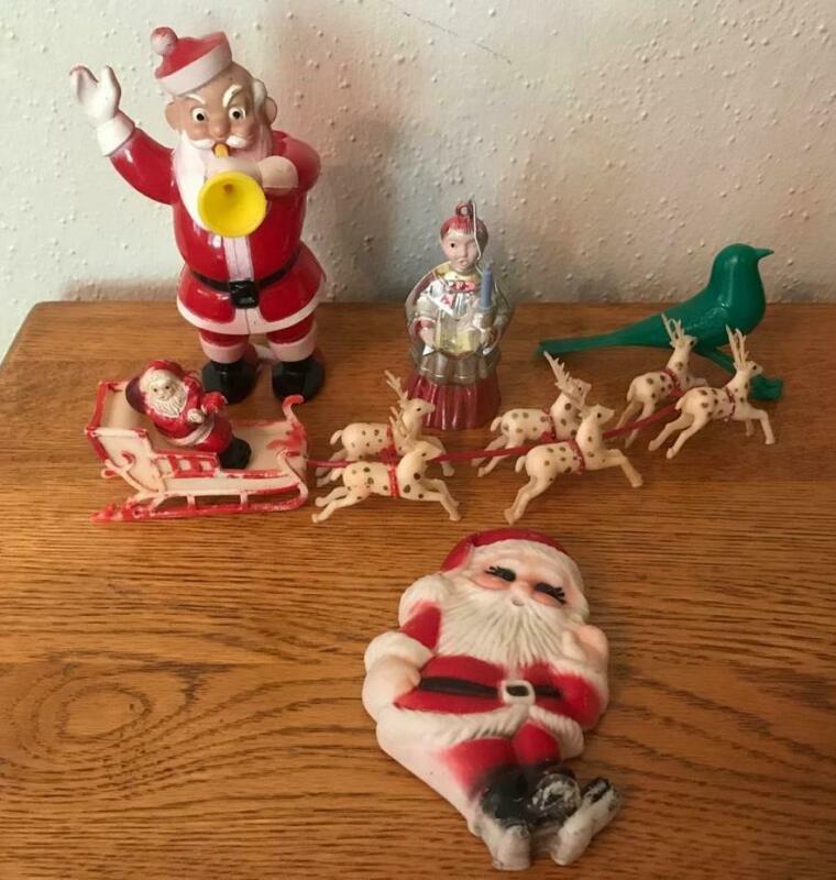 Title (ebay affiliate link): Lot Vtg Christmas Plastic Santa Horn Candy Container Choir Boy Sleigh Reindeer
