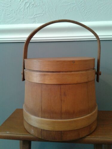 Title (ebay affiliate link): vintage wood sugar bucket with lid 7.25" tall