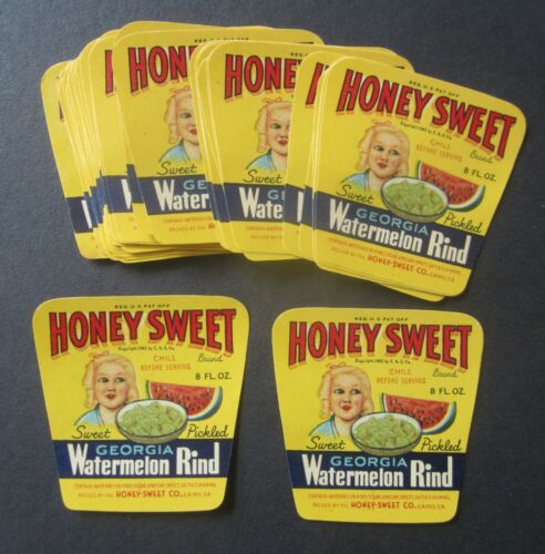 Title (ebay affiliate link): Wholesale Lot of 50 Old 1943 Honey Sweet WATERMELON Rind JAR LABELS Georgia 8oz