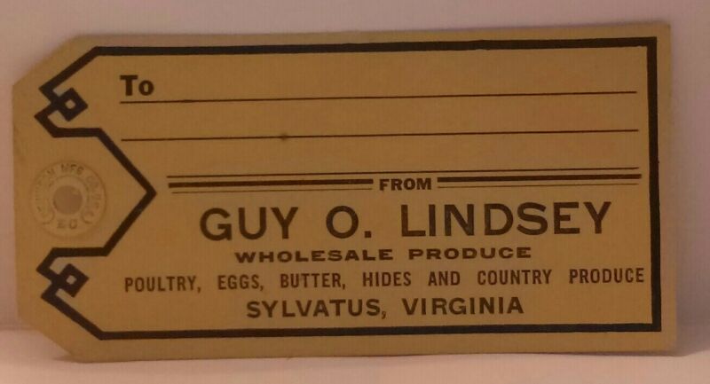 Title (ebay affiliate link): Wholesale Produce Tag, Guy O. Lindsey, Sylvatus, Virginia
