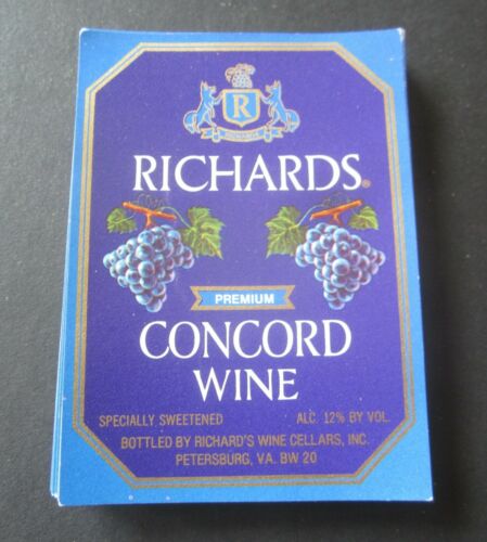 Title (ebay affiliate link): Wholesale Lot of 100 Old Vintage - RICHARDS Concord WINE - LABELS - Virginia