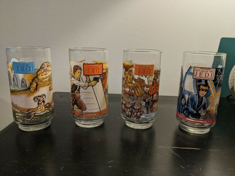 Title (ebay affiliate link): Set of 4 1983 Star Wars Return of the Jedi Burger King Glasses Coca-Cola Coke