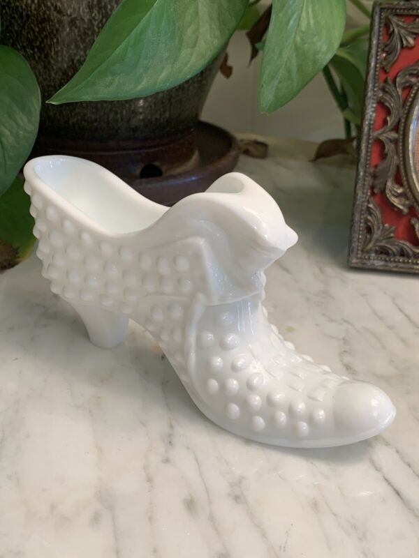 Title (ebay affiliate link): Vintage Fenton Glass Hobnail White Milk Glass Shoe