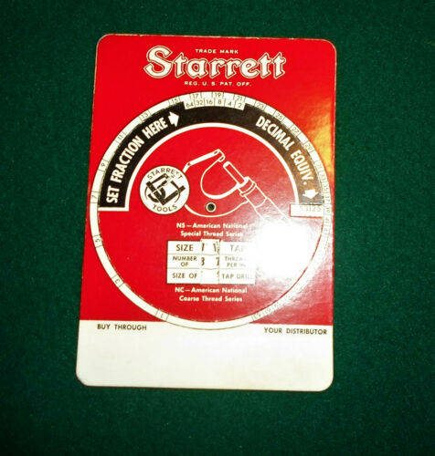 Title (ebay affiliate link): VINTAGE STARRETT CALCULATOR FOR NS / NC THREADS